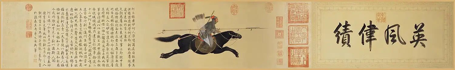 - Portraits of Emperor Qianlong, the Empress, and Eleven Imperial Consorts, 1736 – c. 1770. Rollbild; Tinte und Farbe auf Seide; 53,80 × 1154,50 cm, Cleveland Museum of Art