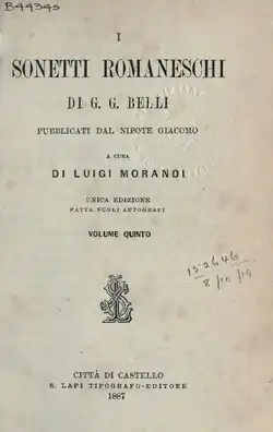 - Luigi Morandi (Hrsg.): I Sonetti Romaneschi. 6 Bände. Lapi Tipografo-Editore, Città di Castello 1886–1889.[1]