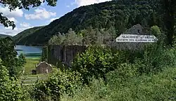 Der durch Schutt von einem Bergsturz aufgestaute, natürliche Bergsee Lac de Sylans im Jura-Quertal Cluse de Nantua bildete die Grundlage für die Eisproduktion.