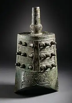 Während der Shang-Dynastie kamen im 15. Jahrhundert v. Chr. große Ritualglocken (鐘 / 钟, zhōng – „Glocke“) in Gebrauch. Bis um 1000 v. Chr. wurden diese Glocken immer größer, bis eine Unterscheidung in tragbare Glocken und schwere Glocken, die in einem Gestell hingen, getroffen werden musste. Bis zum 5. Jahrhundert v. Chr. besaßen Glocken eine wesentliche Funktion in den staatlichen Orchestern, die bei konfuzianischen Ritualen spielten. Den hohen Stand der chinesischen Metallverarbeitung und einen ausgereiften musiktheoretischen Hintergrund zeigt das aus dem Grab des Markgrafen Yi von Zeng in der Provinz Hubei 1978 ausgegrabene Glockenspiel bianzhong. Es besteht aus 65 Glocken des Typs zhong: Die größte ist 153 Zentimeter lang und wiegt über 200 Kilogramm, die kleinste Glocke misst 20 Zentimeter. Der Guss der Glocken war so exakt auf den festgelegten Ton ausgeführt, dass nur wenige nachgestimmt werden mussten.