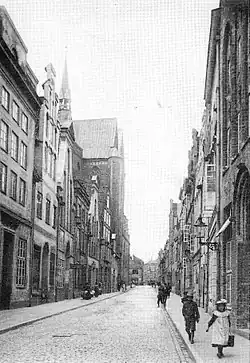 Die Glockengießerstraße (1258 lateinisch: Platea campanariorum) im Jakobi Quartier ist eine der Rippenstraßen der mittelalterlichen Stadtplanung der Lübecker Altstadt.