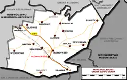 Gmina Działdowo, Gmina Janowiec Kościelny und Gmina Kozłowo, bzw. Gmina Lipowiec Kościelny, Stadt Mława und Gmina Wieczfnia Kościelna.