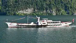 Neben dem Kammerhof ist an einer Schiffsanlegestelle der Traunseeschifffahrt der berühmte Raddampfer Gisela (Baujahr 1871) abgestellt. Das Schiff wurde nach der Tochter Kaiser Franz Josephs, Gisela Louise Marie von Österreich, benannt.