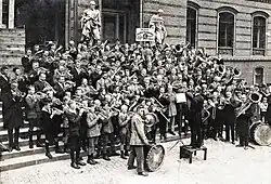Dieser Landesverband ist einer der Gründerverbände des Gnadauer Posaunenbundes. Die Bläserarbeit begann bereits 1871 in Schleswig-Holstein.[19] 1880 wurde der Kieler Posaunenchor[20] gegründet.[21] Die Gründung der Chore erfolgte innerhalb der Männer- und Jünglingsvereine. Diese Vereine waren unter der Leitung des Baron Jasper von Oertzen (1833–1893) im sogenannten Nordbund zusammengeschlossen. Daraus entstand die Vereinigung der Ev. Männer und Jünglingsvereine von Schleswig-Holstein. Hieraus entstand der Christliche Verein Junger Männer, CVJM.[7] Am 9. August 1925 wurde der Verband Christlicher Posaunenchöre von Schleswig-Holstein, Hamburg und Umgebung in Neumünster gegründet. Im Jahre 1934 wurde der Name geändert in Verband christlicher Posaunenchöre der Nordmark.[7] Der Zweite Weltkrieg brachte die Bläserarbeit nahezu zum Erliegen, weil keine Bläser mehr da waren. Bereits zwei Jahre danach wurde das erste Landesposaunenfest in Lindau durchgeführt.[6] Insgesamt elf Chöre und 170 Bläser gibt es in Barmstedt, Elmshorn, Hamburg-Altona, Itzehoe, Lübeck, Neumünster, Tungendorf, Neustadt, Bargteheide, Kiel und Süderbrarup.[19] Seit 1994 gibt es eine Blechbläser-Gruppe Gnadau Nord. Der Posaunenchor der Gemeinschaft in der ev. Kirche Elmshorn wurde am 28. März 2012 mit der Pro-Musica-Plakette für 100 Jahre Ehrenamt ausgezeichnet.