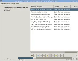 ![]() GNOME MPlayer 1.0.9 mit Musikalbum in der Wiedergabeliste | |