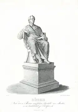 - ↑ Ute Maack: Über das zu Frankfurt mir zu errichtende Denkmal. 6. Juli 1821: C. D. Rauch an Caroline von Humboldt. In: Katharina Mommsen (Hrsg.): Die Entstehung von Goethes Werken in Dokumenten. Band VI: Feradeddin-Gypsabgüsse. Walter de Gruyter, Berlin / New York 2010, ISBN 978-3-11-023754-2, S. 84.