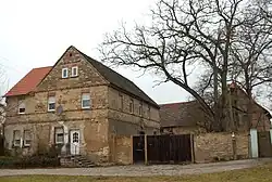 Das Anwesen wurde im Jahr 1690 als Gasthof in Lehmbauweise errichtet. 1945 erhielt das Haus ein aus Ziegeln gebautes Obergeschoss. An der Fassade des Gebäudes finden sich zwei Relieftafeln mit Inschriften, die die Geschichte des Gebäudes behandeln. Hofseitig befindet sich das Eingangsportal des Hauses.