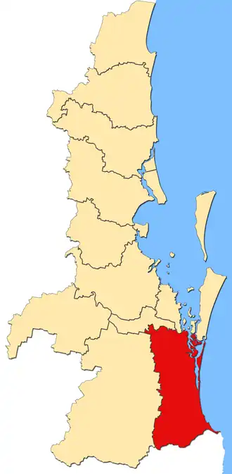 Die Gold Coast ist die südlichste LGA des Staats an der Ostküste und grenzt an New South Wales. Die Zentren der Hauptstadt Brisbane und der Gold Coast sind etwa 70 km voneinander entfernt.