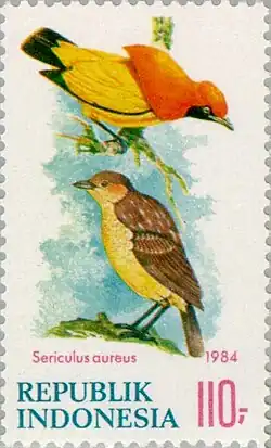 - ↑ Sericulus aureus in der Roten Liste gefährdeter Arten der IUCN 2016.10. Eingestellt von: BirdLife International, 2016. Abgerufen am 1. April 2017.