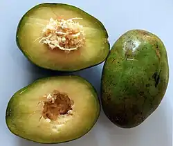 Unreife Frucht, auch aufgeschnitten und mit Kern