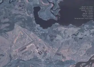 ![]() Satellitenbild von Happy Valley-Goose Bay; oben im Bild die Mündung des Goose River | ||