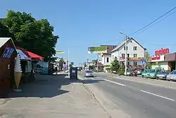 Die ehemalige Kreisstadt Lębork (Lauenburg in Pommern), und die jetzige Kreisstadt Wejherowo (Neustadt in Westpreußen, 28 Kilometer entfernt) sind jeweils über gut ausgebaute Nebenstraßen direkt zu erreichen.