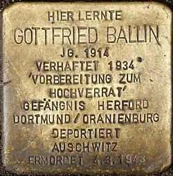 - ↑ Gymnasium Kreuzgasse: Zwei Stolpersteine für Richard Rosendahl und Gottfried Ballin. In: report-k.de. 30. März 2014, abgerufen am 30. September 2016.