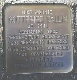 - ↑ Gottfried Ballin. Gedenkbuch. Opfer der Verfolgung der Juden unter der nationalsozialistischen Gewaltherrschaft in Deutschland 1933-1945, abgerufen am 30. September 2016.