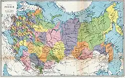 Vor dem Ersten Weltkrieg bestand Russland aus 78 Gouvernements und 21 Oblasts[2] (sortiert nach russischem Alphabet):