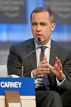 Der Gouverneur der Bank of England ist die höchste Position in der Bank of England. Es ist nominell ein Posten im Öffentlichen Dienst. Die Ernennung erfolgt innerhalb der Bank, wobei der Monarch diese offiziell bestätigt.[1] Der Amtsinhaber bildet seinen oder ihren Nachfolger selbst aus. Der Gouverneur der Bank of England hat den Vorsitz im Monetary Policy Committee,[1] das eine wichtige Rolle bei der Leitung der nationalen Wirtschafts- und Währungspolitik im Vereinigten Königreich spielt. Daneben hat der Gouverneur der Bank of England den Vorsitz im Financial Policy Committee (FPC) und dem Ausschuss der Prudential Regulation Authority (PRA).[1]