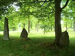 Die quadratische Steinsetzung von etwa 4,0 m Seitenlänge besteht aus 2,0 bis 3,0 m hohen in einer Reihe aufgestellten Steinen.
