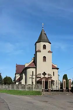 - Die römisch-katholische Kirche mit dem Patrozinium Mariä Heimsuchung (Kościół Nawiedzenia Najświętszej Maryi Panny) wurde 1922–1928 errichtet. Am 17. Juli 1928 wurde die Kirche durch den Olmützer Weihbischof Josef Schinzel geweiht. Im März 1945 wurde die barocke Zwiebelhaube des Glockenturms zerstört und nachfolgend notdürftig repariert.