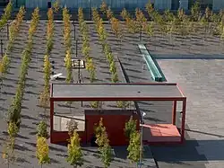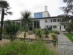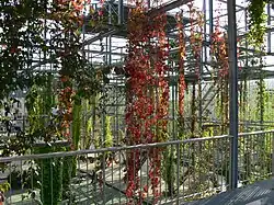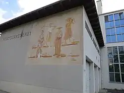 1934 folgte die zweite Eingemeindung mehrerer Vorortsgemeinden und vergrösserte die Zuständigkeitsbereiche des Gartenbauamts nochmals erheblich.[5] Ab 1940 wurden die städtischen Grünflächen im Rahmen der «Anbauschlacht», auch Plan Wahlen genannt, zu Anbauflächen umfunktioniert, um den Selbstversorgungsgrad der Bevölkerung zu erhöhen. 1941 wurde der vom Architekten Heinrich Weilenmann entworfene Neubau der Stadtgärtnerei im Stil der klassischen Moderne mit Wandgemälde von Karla Götz (1904–1968) im Sackzelg, Zürich-Albisrieden fertiggestellt. Nach dem Umbau der Stadtgärtnerei 1962 wurde der Sandgarten angelegt.