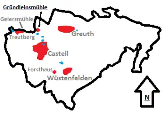 ![]() Lage der Gründleinsmühle im Casteller Gemeindegebiet
