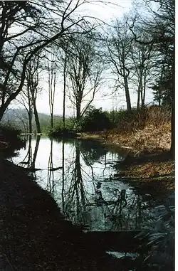 In einer Senke liegt ein Teich, der aus umliegenden Quellen gespeist wird. Hier sind die seltenen Kammmolche (Triturus cristatus-Superspezies), Edelkrebse (Astacus astacus) sowie u. a. der Wasserhahnenfuß (Ranunculus aquatilis L.) zu Hause.