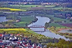 - ↑ Carsten Korfesmeyer: Porta Westfalica: Abrissarbeiten an der Eisenbahnbrücke in Neesen gestoppt. Mindener Tageblatt, 17. Januar 2014, archiviert vom am 4. Februar 2014; abgerufen am 16. Oktober 2017.