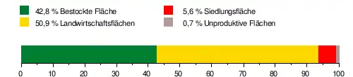 Es besteht zu 42,8 % aus bestockter Fläche, zu 50,9 % aus Landwirtschaftsfläche, zu 5,6 % aus Siedlungsflächen und zu 0,7 % aus unproduktiven Flächen.[7]