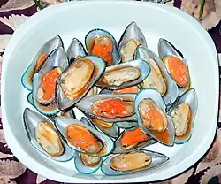 - ↑ Der korrekte Trivialname ist im Englischen eigentlich green-lipped mussel, also Grünlippmuschel. Sie wird jedoch unter dem Namen Greenshell mussel, also Grünschalmuschel, vermarktet.