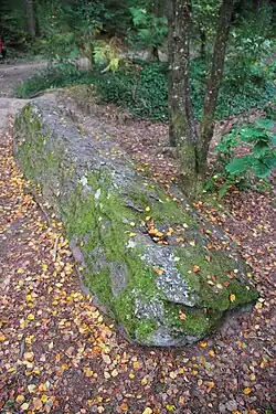 Etwa acht Meter nördlich des Grabes der Riesen liegt ein vier Meter langer Menhir, der zu einer Reihe von Gräbern aus der älteren Bronzezeit (um 1500 v. Chr.) gehört. Wahrscheinlich hat man hierfür die Steine neolithischer Alignements verwendet, die zuvor in der Nähe dieser Stelle standen. Nordsüd gerichtete Alignements sind aus dem Wald von Paimpont bekannt (Pierre Drette 2 km östlich von Schloss Comper). Im Bereich des Waldes von Broceliande gibt es eine Anzahl Allées couvertes: