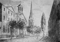 Die erste Kirche der Gemeinde 1808 am Broadway und der Rector Street gebaut.[6] Da die Bevölkerung New Yorks sehr schnell wuchs, beschloss die Gemeinde, die Kirche in das Stadtzentrum zu verlegen. 1843 kaufte Henry Brevoort das Grundstück, auf dem sich das Gebäude heute befindet. Mit dem Bau beauftragt wurde der 23-jährige Architekt James Renwick Jr., ein Neffe Brevoorts, dessen einzige abgeschlossene Arbeit damals der Springbrunnen im Bowling Green Park war.[7]
