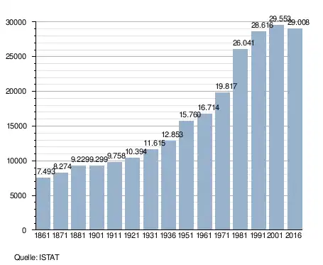 - ↑ Bilancio demografico e popolazione residente per sesso al 31 dicembre 2024. ISTAT. (Bevölkerungsstatistiken des Istituto Nazionale di Statistica, Stand 31. Dezember 2024).