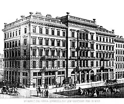Anton Schneider (1820–1872), der „eigentliche Begründer des Hotelgeschäftes zu Wien in größerem Style“,[2] stellte 1863 am selben Ort (und somit im ersten Abschnitt der entstehenden Wiener Ringstraße) nach Plänen des Architekten Carl Tietz (1831–1874) die Maison meublée fertig, das sogenannte Schneider’sche Haus, ein palaisartiges 56,6 m langes und 23,5 m tiefes Gebäude, in dem unter anderem Erzherzog Wilhelm (1827–1894) Wohnung bezog.[3]