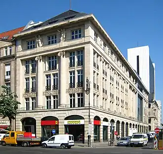 An seiner Stelle wurde nach dem Entwurf der Berliner Architekten Kurt Berndt und A. F. M. Lange das Büro- und Geschäftshaus Römischer Hof errichtet. Baubeginn war 1910 und die Roharbeiten waren im Juli 1911 abgeschlossen. Im Frühjahr 1912 konnte das Gebäude bezogen werden. Der Großteil der heutigen Fassaden stammt aus dieser Zeit. Der Haupteingang des Gebäudes befand sich in der Charlottenstraße.