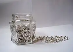Man gießt zu diesem Zweck z. B. geschmolzenes Metall entweder in dünnem Strahl in kaltes Wasser unter beständigem Umrühren des Wassers oder durch einen nassen, über das Wasser gehaltenen und beständig gerüttelten Reisigbesen.