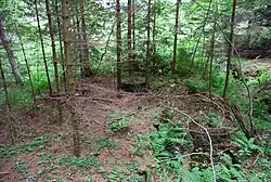 Die Trassen der alten Ableitungen sind noch als schmale Stufen im Gelände erkennbar.