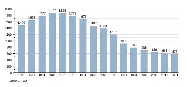- ↑ Bilancio demografico e popolazione residente per sesso al 31 dicembre 2024. ISTAT. (Bevölkerungsstatistiken des Istituto Nazionale di Statistica, Stand 31. Dezember 2024).