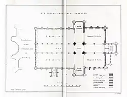 Der Grundriss der mit einem Querhaus versehenen Kirche entspricht dem eines lateinischen Kreuzes. Die Einteilung durch Spitzbogenarkaden in mehrere Schiffe und deren hölzerne Decken sind typisch für gotische englische Hallenkirchen und für gotische englische Pfarrkirchen überhaupt. Die drei Schiffe des Langhauses haben die für englische Hallenkirchen typischen Paralleldächer. Außergewöhnlich ist die Verbindung breiterer Seitenschiffe mit einem schmaleren Mittelschiff, die Breite von Mittelschiff und Querhaus war seit der Anfangszeit dieses Bauwerks durch den Vierungsturm vorgegeben. Alle drei Schiffe sind mit kassettierte und polygonalen hölzernen Tonnengewölben gedeckt, die auch als ceiled wagon roof bezeichnet werden, im Unterschied zum echten wagon roof („Planwagendach“),[2] bei dem nan durch den Dachstuhl bis an die Dachschrägen sehen kann. Im Chorbereich hat nur das Mittelschiff, der eigentliche Chor einen solchen ceiled wagon foof,[3] die im fünfschiffigen Teil des Chors auch als Kapellen bezeichneten Seitenschiffe haben flache Decken, die etwa in Basishöhe der Basis der Mittelschiffstonne liegen, so dass dieser Teil der Kirche sowohl als Hallenkirche als auch als Pseudobasilika bezeichnet werden kann.