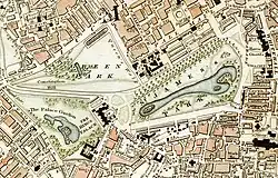 Der Green Park war ursprünglich ein sumpfiger Begräbnisplatz für Leprakranke. 1668 ließ König Charles II. hier Hirsche für die Jagd aussetzen. Er nannte die Grünfläche Upper St. James Park, ließ ihn mit einer Backsteinmauer einfassen sowie ein Eishaus errichten. Die berühmte Feuerwerksmusik des Komponisten Georg Friedrich Händel wurde im Green Park uraufgeführt. Sie war anlässlich des im Oktober 1748 geschlossenen Friedens von Aachen zur Beendigung des Österreichischen Erbfolgekriegs als Begleitmusik zu einem gigantischen Feuerwerk komponiert worden. Aufgrund der feuchten Witterung zündete das Feuerwerk jedoch nicht, dafür geriet ein Teil der Bühnenkonstruktion in Brand.[1] Einzig durch Händels Musik wurde das Fest nicht zum Fiasko. Der Green Park lag damals am Stadtrand von London und war bis ins 18. Jahrhundert berüchtigt für Raubüberfälle und Duelle und diente als Treffpunkt für Homosexuelle. Auch danach war er lange Zeit gefährlich – wie beim ersten Attentat auf Königin Victoria im Jahr 1840.