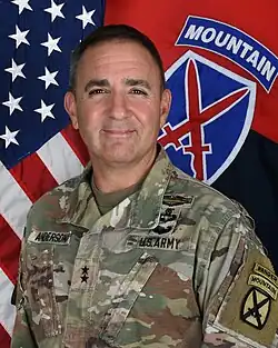 Daran schloss sich eine Versetzung zum Stab des United States Africa Commands an, der sein Hauptquartier entgegen dem Namen in Stuttgart hat. Dort war Anderson zwischen Juli 2021 und August 2022 in der J3 Abteilung für Operationen tätig. In diese Zeit fiel am 2. September 2021 seine Beförderung zum Generalmajor. Im September 2022 erhielt er das Kommando über die 10. Gebirgsdivision. Dieses Kommando übte er bis Mai 2024 aus. Dann wurde er von Generalmajor Scott Naumann abgelöst. Anderson übernahm am 6. Dezember 2024 das Kommando über das XVIII Airborne Corps und wurde zum Generalleutnant befördert.[1]