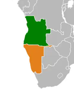 Die Grenze zwischen der Republik Angola und der Republik Namibia ist 1427 Kilometer[1] lang und verläuft in einem zusammenhängenden Abschnitt von 17° 38′ 13″ S, 23° 25′ 59″ O im Osten bis 17° 15′ 7″ S, 11° 45′ 4″ O im Westen.