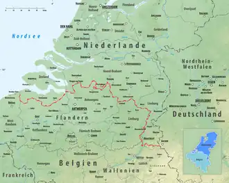Die Grenze zwischen Belgien und den Niederlanden hat eine Länge von 478 Kilometern.[1] Sie entstand de facto, als am 4. Oktober 1830 die Unabhängigkeit Belgiens ausgerufen wurde. In der Londoner Konferenz (1838–1839), die am 19. April 1839 mit der Unterzeichnung des Vertrags von London endete, wurde der Grenzverlauf noch nicht festgelegt. Am 5. November 1842 wurde in Den Haag ein Grenzvertrag unterschrieben. Im Vertrag von Maastricht vom 8. August 1843 wurden auf Karten im Maßstab 1:10.000 (teils sogar 1:2500) Grenzverläufe detailliert festgelegt. Grenzmarkierungen aus Gusseisen wurden mit den Nummern von 1 bis 369 aufgestellt.[2] [3] Grenzstein Nummer 1 steht auf dem Vaalser Berg; der Grenzstein mit der Nummer 369 an der Nordsee.