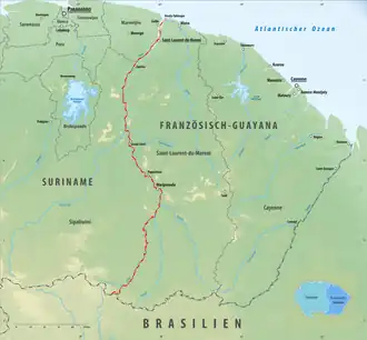 Die Grenze zwischen Frankreich und Suriname hat eine Länge von 556 Kilometern.[1]