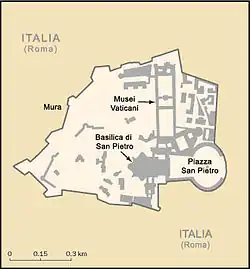 Die Grenze zwischen der Italienischen Republik und dem Staat Vatikanstadt liegt innerhalb der italienischen Hauptstadt Rom und ist 3,2 km lang. Sie folgt größtenteils der Leoninischen Mauer und schließt den Petersplatz, jedoch nicht den römischen Stadtteil Borgo ein. Die Grenze ist eine EU-Außengrenze, jedoch gehört die Vatikanstadt zum italienischen Zollgebiet und Zollkontrollen finden nicht statt.