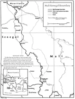 Frankreich, das die senegalesischen Küstengebiete schon seit dem 17. Jahrhundert zu kolonialisieren begonnen hatte, besetzte die Kolonie Obersenegal und Niger im Jahr 1900.[2] Der Grenzverlauf zwischen Senegal und Französisch-Sudan (dem heutigen Mali) wurde erstmals 1895 festgelegt.[3] 1960 wurden beide Gebiete in der Mali-Föderation unabhängig, die aber bereits nach wenigen Wochen zerbrach und Senegal und Mali als unabhängige Staaten zurückließ.