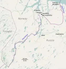 Die Staatsgrenze zwischen Norwegen und Russland (norwegisch russegrensa/russegrensen, russisch Российско-норвежская граница Rossijsko-norweschskaja graniza) besteht aus einer 197,7 km langen[2] Landgrenze zwischen Sør-Varanger, Norwegen, und dem Petschengski rajon (russisch Пе́ченгский райо́н), Russland. Dazu kommt eine 23,2 km lange Seegrenze im Varangerfjord (norwegisch Varangerfjorden, russisch Варангер-фьорд). Es besteht ferner eine Grenze zwischen den ausschließlichen Wirtschaftszonen beider Länder in der Barentssee und im Arktischen Ozean. Zwischen 1944 und 1991 war es die Grenze zwischen Norwegen und der Sowjetunion. Es gibt einen einzigen Grenzübergang an der E105 bei Storskog, Norwegen, und Borissoglebski (russisch Борисоглебский), Russland.