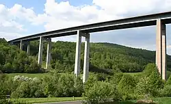 Die Autobahntrasse besitzt im Verlauf der Brücke im Grundriss einen Radius von 2000 m sowie ein Quergefälle von 2,50 %. Die 935 m lange, und 30,5 m breite Brücke hat eine Höhe von maximal 96 m über dem Tal.
