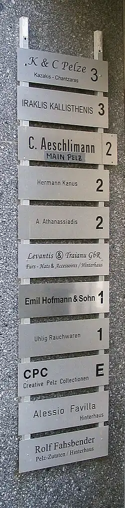 Der zweite große Geschäftszweig war die Anfertigung und der Vertrieb von Pelzen: Das Frankfurter Pelzhandelszentrum Niddastraße, zusammen mit seiner griechischen Gemeinde, wurde zum europäischen Mittelpunkt der damals wichtigen Branche.