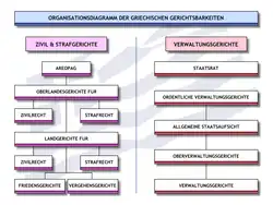 Griechenland verfügt über Universitäten (Panepistimio) und Technische Hochschulen (TEI, am ehesten mit einer deutschen Fachhochschule vergleichbar). Die Hochschulen sind dabei ausnahmslos in staatlicher Hand unter Verwaltung des Bildungsministeriums in Athen. Private Universitäten sind nach Artikel 16 Absatz 8 der griechischen Verfassung von 1975 verboten.[74] Die Ausbildung an einer griechischen Hochschule ist kostenfrei; Bedürftige haben Anspruch auf staatliche Unterstützung.[70]