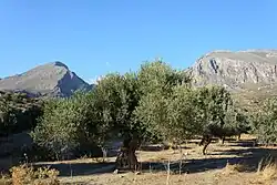 An Bäumen wachsen der kulturell und wirtschaftlich bedeutende Ölbaum, weiterhin Pinien, Aleppokiefern, Zypressen, Obstbäume sowie an Küstenregionen Palmen. Ab einer Höhe von 1000 m kommen Kastanien, Ulmen und Eichen vor, bis 2000 m Schwarzkiefern und Apollotannen, über der Baumgrenze auch alpine Matten.[24] Zu den endemischen Bäumen gehört die kefalonische Tanne.