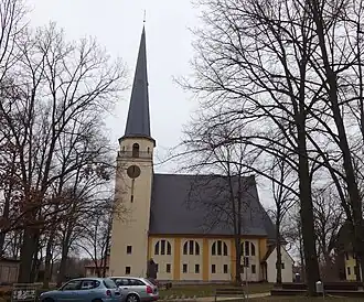- Christuskirche im Heimatstil, die von Georg Büttner geplant und zwischen 1914 und 1916 von Hans Palm erbaut wurde.